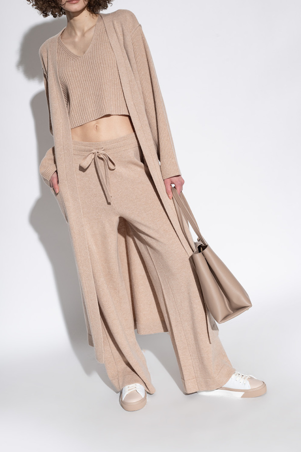Beige and white ‘Joy’ sneakers from Furla. Made of leather, this lace-up pair is complete with a gold-tone logo print, logo patch on the side and rubber sole in beige and white.