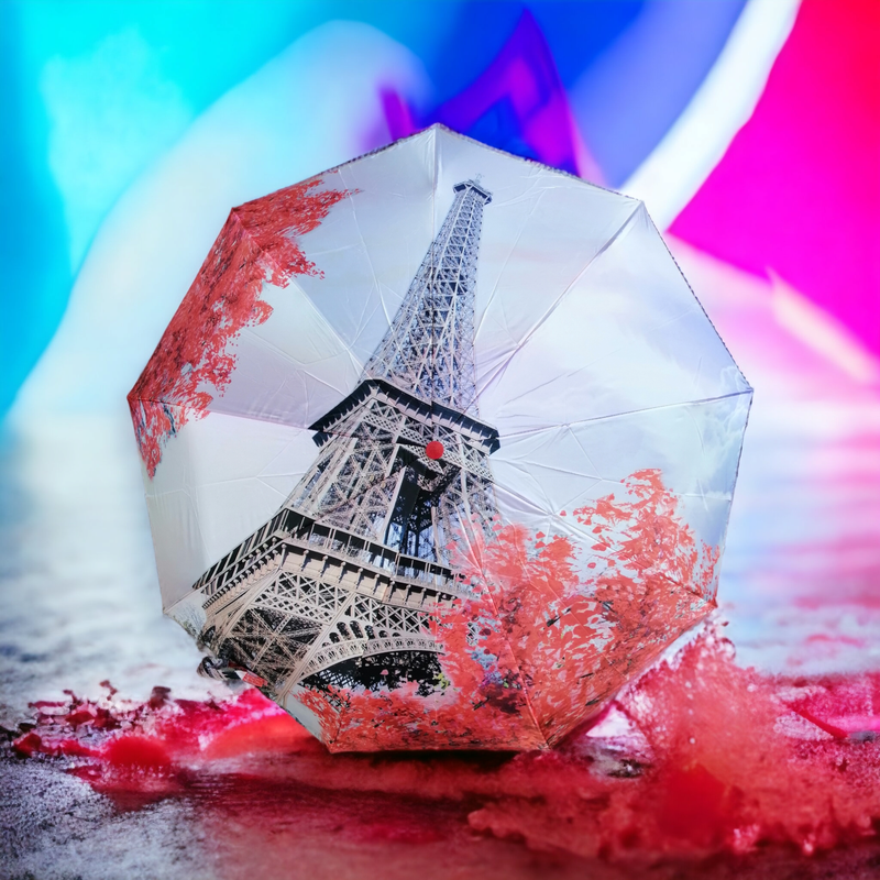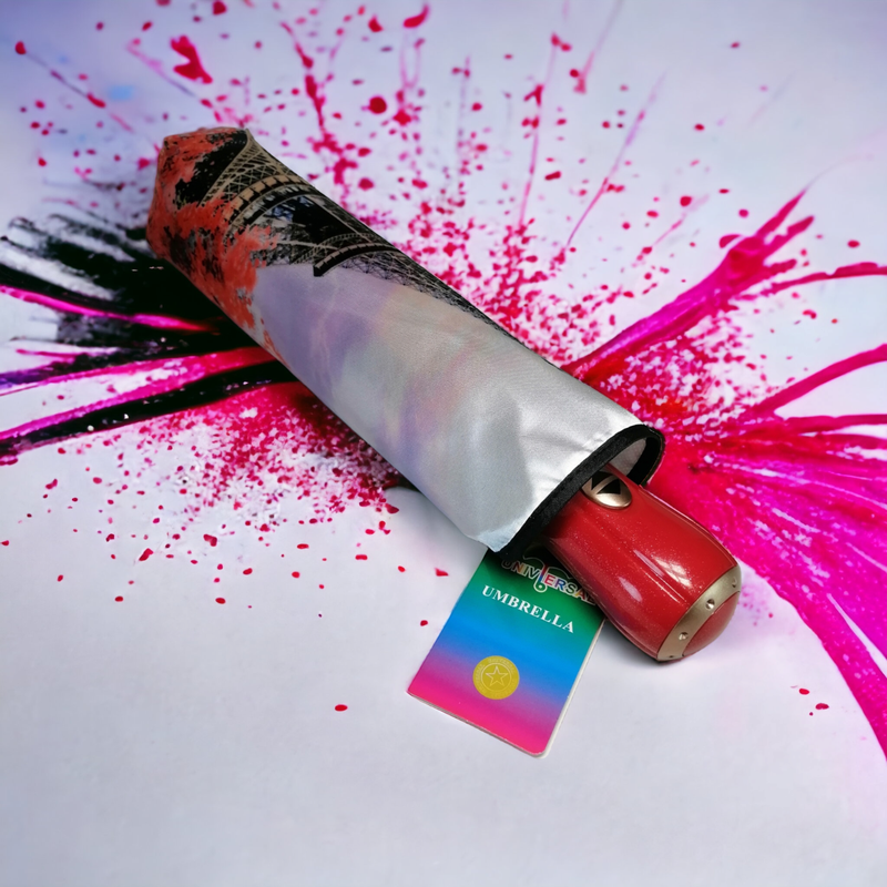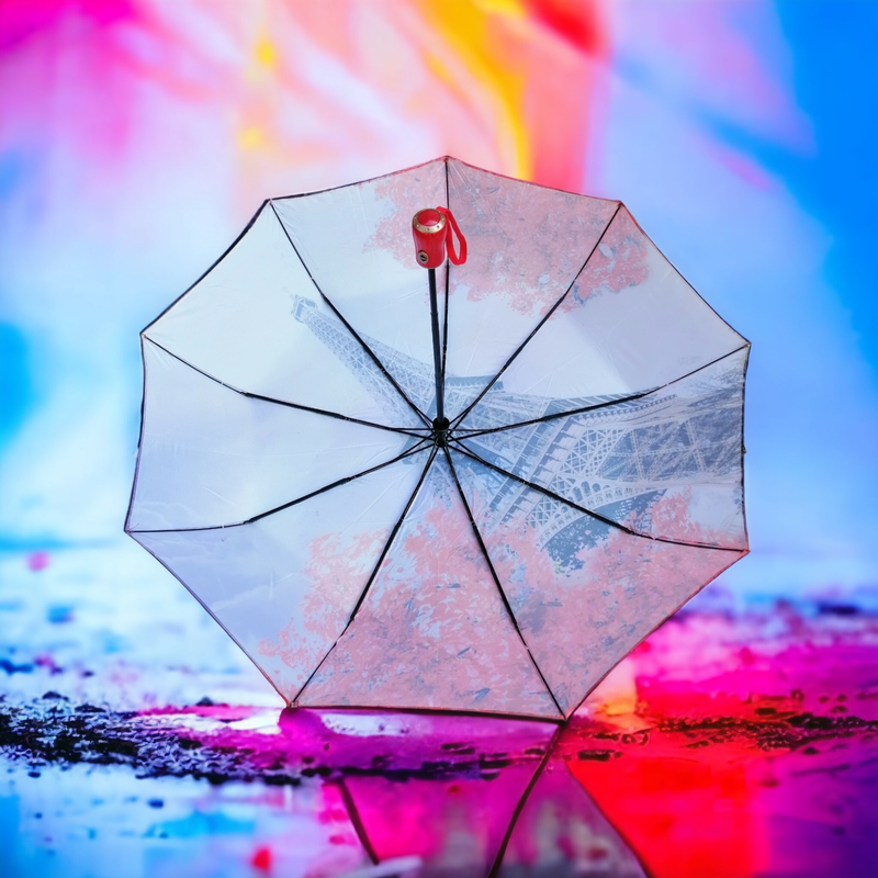 Когда на улице дождь и пасмурное небо, ,женский складной зонт с 9 карбоновыми спицами - лучший выбор. Его роскошный сатиновый купол в 6 доступных цветах дополнен элегантным изображением Эйфелевой башни, которое подчеркивает утонченность и стиль его обладательницы.Механизм полного автомата обеспечивает быстрое и легкое использование. Корпус из стали, покрытой краской, обладает надежностью и прочностью. Прямая пластиковая ручка со шнурком обеспечивает удобство и комфорт при ношении. С диаметром купола 100 см и весом всего 380 грамм, этот зонт идеально подходит для повседневного использования и прекрасно дополнит любой образ.