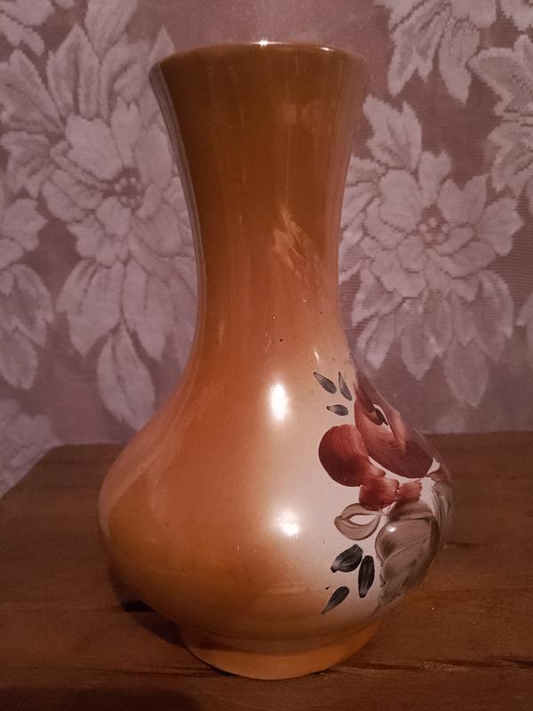 Ваза фарфоровая с рисунком цветов, в идеальном состоянии. Высота: 16 см.; диаметр верхней части: 6 см.; диаметр дна вазы: 6,5 см. Перегородка-- Новой почтой, Укр.почтой, за счет покупателя; наложенным платежом, с подпиской.
