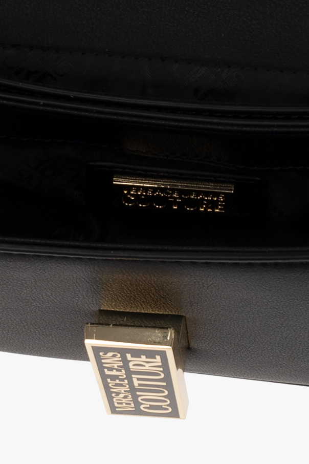 Black shoulder bag from Versace Jeans Couture. Crafted from faux leather, this design secures with a branded fastener and features a back slip pocket, a detachable half-round handle, a detachable shoulder strap reinforced with a chain and one internal compartment with two slip pockets.