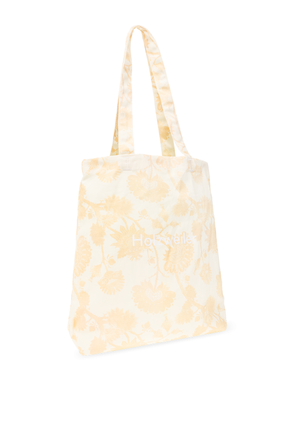 Yellow ‘Hippo’ shopper bag from Holzweiler. Crafted from cotton, this design showcases a colourful graphic print with flowers accompanied with a white logo, two half-round handles and one internal compartment.