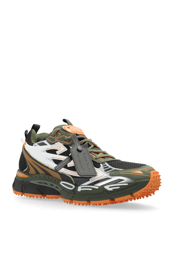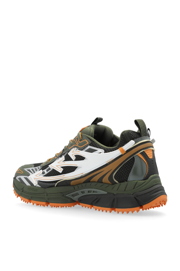 Introducing the Ow Be Right, a sophisticated blend of contemporary design and superior craftsmanship, brought to you by the renowned brand Off-White. These low-top sneakers are a testament to modern elegance, ideal for the discerning gentleman who values both style and comfort. Crafted with a meticulous attention to detail, these sneakers feature a classic shape with a solid construction and distinct finishes. The dominant hues of olive green, white, black, and orange are artfully combined in dynamic lines and panels, creating a visually striking appearance. The upper is constructed from a premium mix of mesh and synthetic leather, ensuring durability and breathability, while the rubber sole with a pronounced tread provides excellent traction. The interior is lined with high-quality materials, enhancing comfort for all-day wear. Signature details include: the \"OFF-WHITE\" inscription on the tongue, distinctive graphic elements and logo on the sides, vibrant contrasting laces, and an iconic black tag attached to the laces. Additional features such as mesh inserts for ventilation, pull tabs on the heel for easy wearing, and a thick, cushioning sole underscore the thoughtful design. Why Choose This Product? Exquisite design with a blend of vibrant colors and patterns. High-quality materials ensuring durability and comfort. Excellent traction and support with a robust rubber sole. Signature Off-White branding and unique details. Enhanced breathability and ease of wear with mesh inserts and pull tabs.