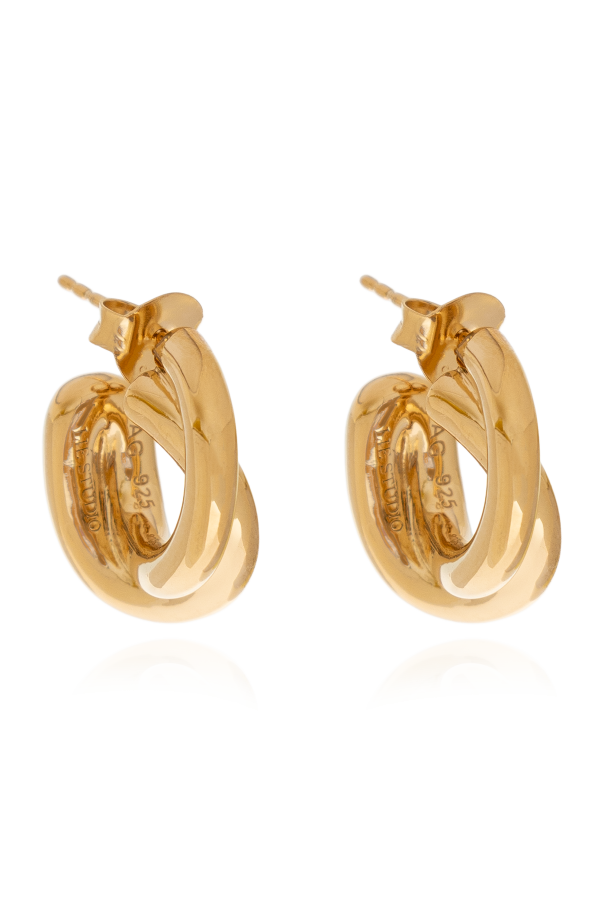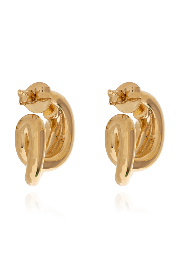 Introducing the \'The Diana\' earrings by Lie Studio, an epitome of opulence and sophistication. These exquisite earrings, crafted from sterling silver 925 and adorned with a lustrous gold plating, exemplify the perfect blend of robustness and elegance. The earrings are designed in the shape of elegantly curved hoops, striking a balance between solidity and delicacy. Their simplistic yet refined design is characterized by fluid, rounded lines, making them a timeless addition to any jewelry collection. Featuring classic stud closures, these earrings ensure both comfort and security. The inner side of the earrings is engraved, possibly indicating the designer\'s signature or the material\'s hallmark, adding a touch of personal craftsmanship to each piece. The dominant golden hue of these earrings enhances their classic and sophisticated appeal, making them an ideal choice for both everyday wear and evening occasions. Whether worn alone as a statement piece or paired with other gold accessories, \'The Diana\' earrings are sure to elevate any outfit. Why Choose This Product? Crafted from sterling silver 925 with a luxurious gold plating Elegant and timeless hoop design Comfortable and secure stud closures Exclusive signature engravings Perfect for both casual and formal wear