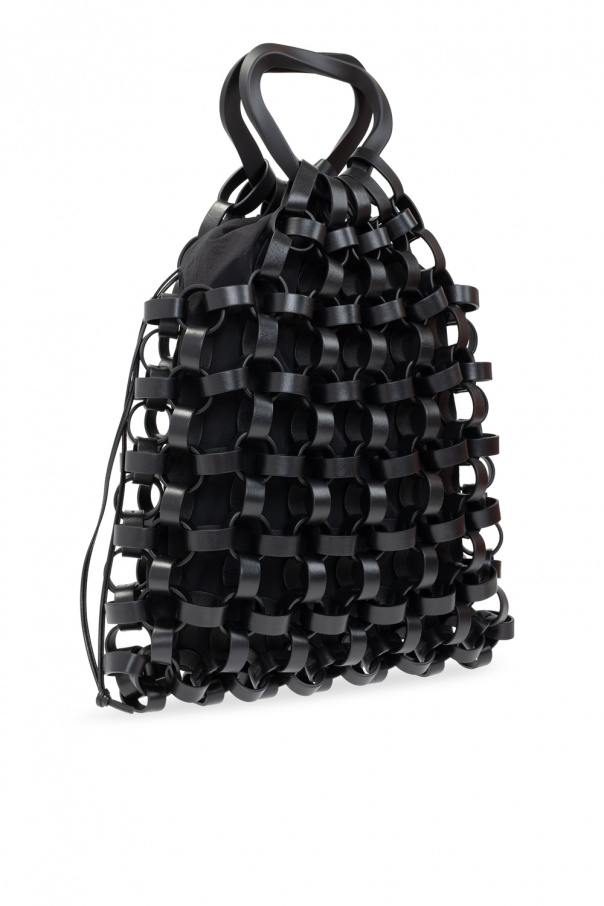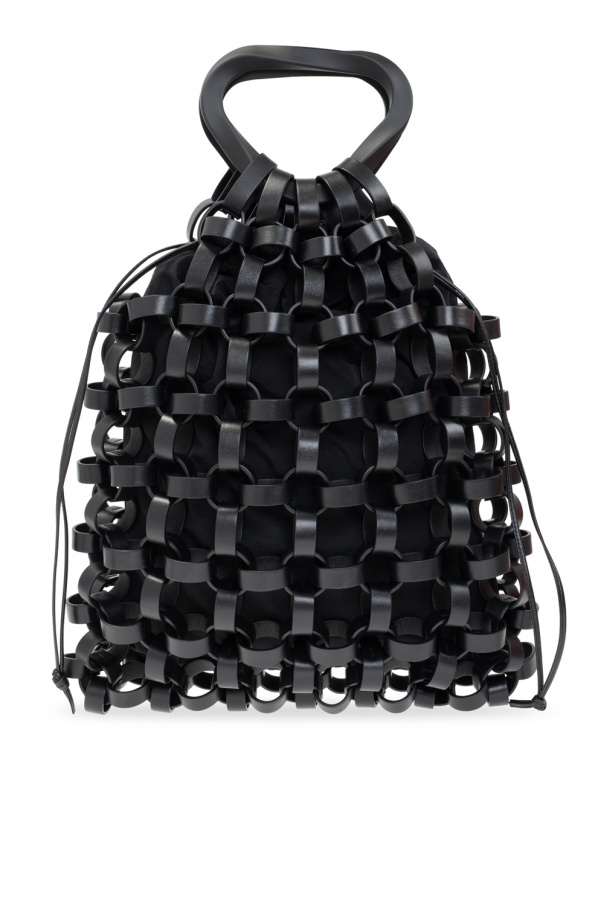Black ‘Grasp’ shopper bag from Bottega Veneta. Made of lamb leather, this design features two half-round handles and one internal compartment with drawstrings.