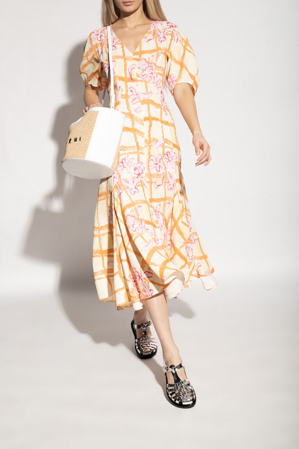 Silver-tone sandals from Marni. Made of leather, this model sits on a black rubber sole and features an adjustable buckle strap at the ankle and the brand\'s logo embossed on the side.