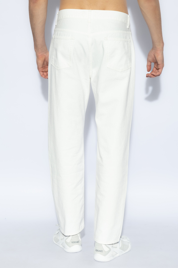Introducing the exquisite Jeansy z kieszeniami by Officine Generale, a sartorial masterpiece in pristine white. Crafted from 100% cotton, these jeans embody the essence of timeless elegance with a classic, rigid denim finish. The regular fit offers a relaxed silhouette, ensuring both comfort and freedom of movement. These jeans are adorned with the quintessential five-pocket design, featuring both front and back pockets, and a traditional button closure, elevating their understated sophistication. The design is minimalistic, devoid of overt branding or logos, allowing the superior craftsmanship to speak for itself. This piece is a testament to the enduring appeal of refined men\'s fashion. Why Choose This Product? Luxurious Material: Made from premium 100% cotton for a classic denim feel. Elegant Design: Clean lines and minimalistic styling for timeless appeal. Functional Details: Equipped with five practical pockets and a button closure. Versatile Fit: Regular cut provides comfort and style for any occasion.