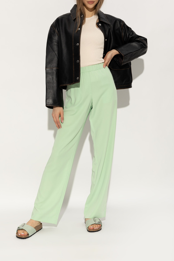 Light green ‘Arizona Big Buckle’ slides from Birkenstock. Made of nubuck, this pair features adjustable buckle straps, an embossed logo on the side, anatomically shaped latex-cork footbed and black EVA foam sole.