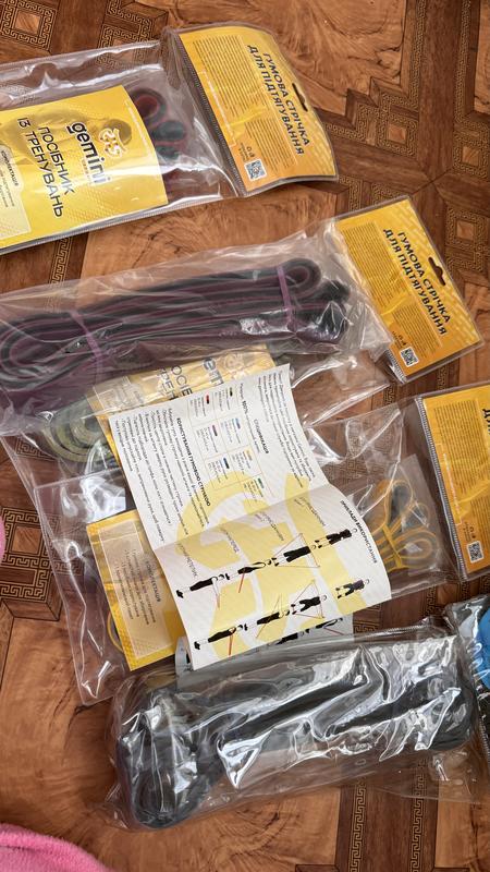 Во всех резинках, кроме сине-чернои в комплекте мешочек и инструкцияЖелто-серая - сопротивление 15-30 кг - 419 грн