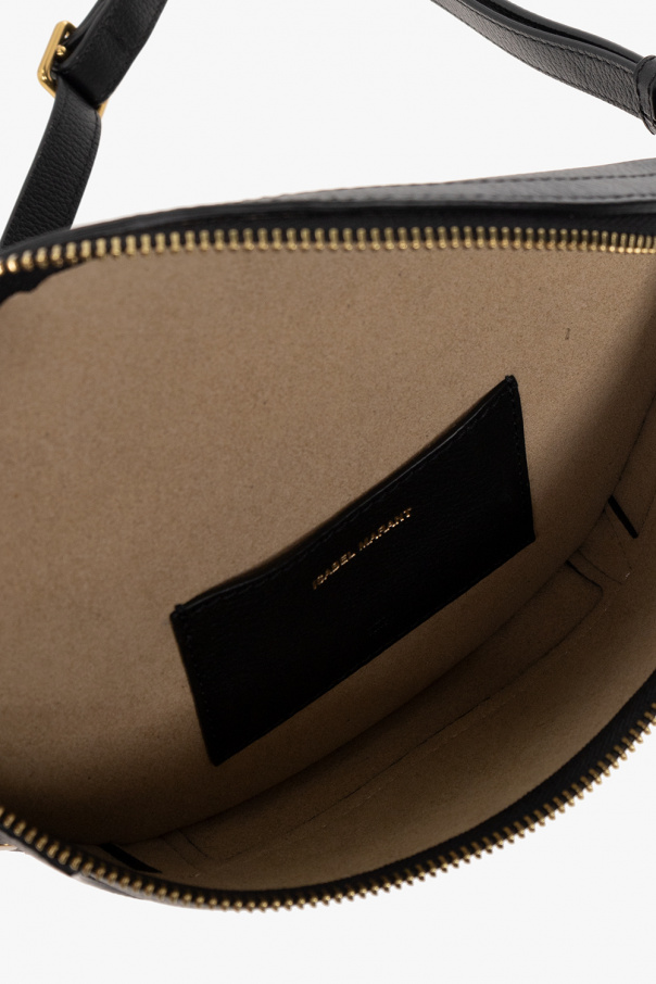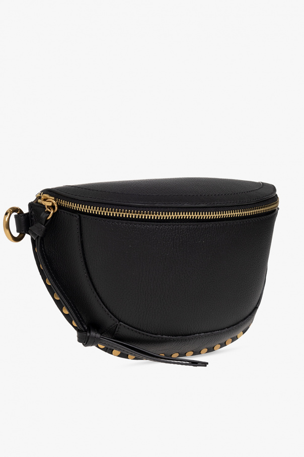 Black ‘Skano’ belt bag from Isabel Marant. Made of bovine leather, this model features a zip fastening with decorative tassels, metal studs, back pocket, embossed logo, detachable and adjustable shoulder strap, antique gold-tone metal hardware and one internal compartment with one card slot.