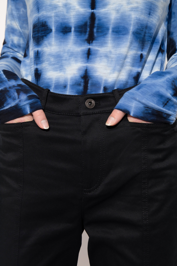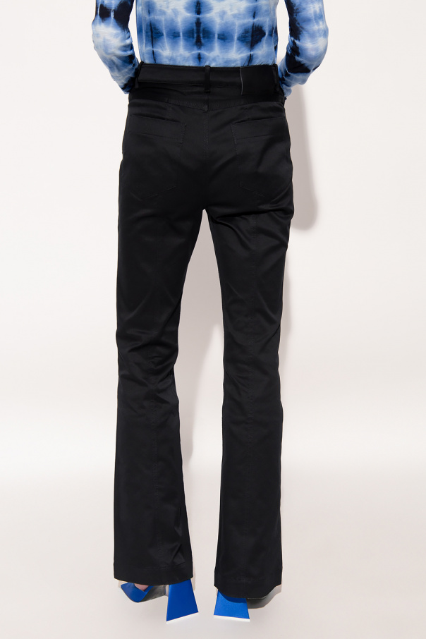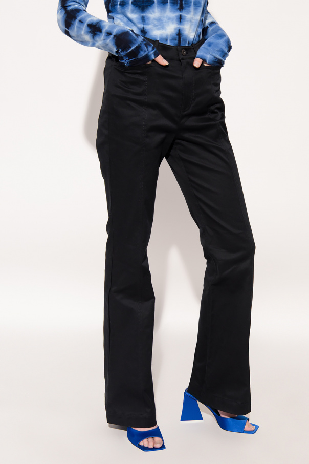 Black flared trousers from Proenza Schouler White Label. Crafted from cotton, this pair features a zip and button closure, three front pockets and two back pockets with a logo patch.