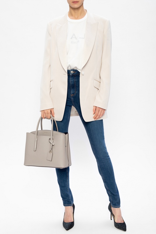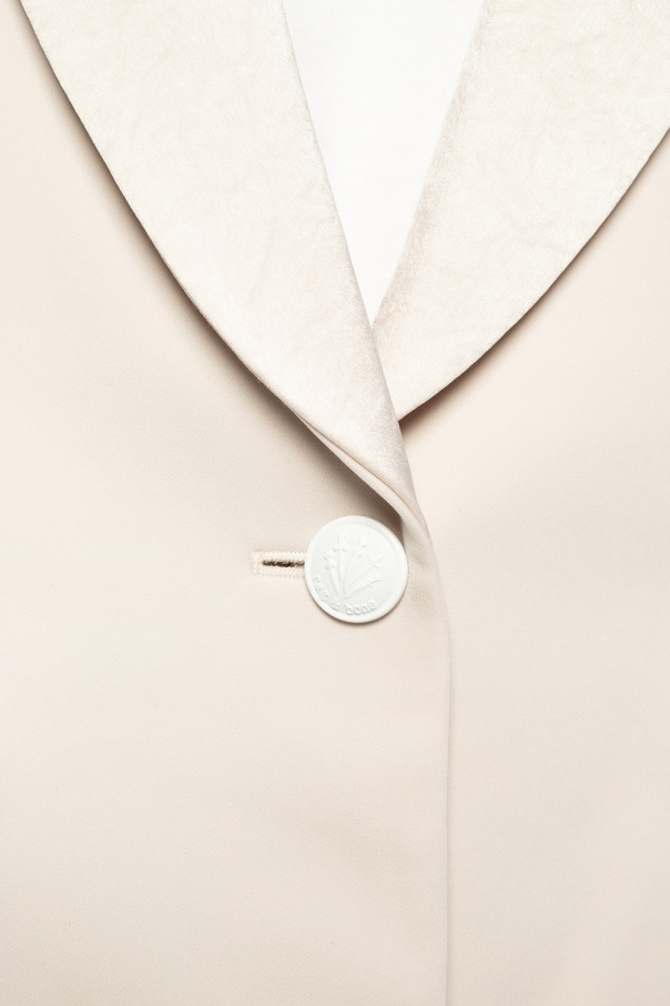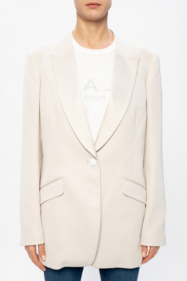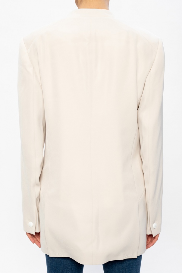 Cream blazer from Rag & Bone. Spun from synthetic yarns, this design fastens via button and features long sleeves, two flapped pockets on the front and a double vent on the back.