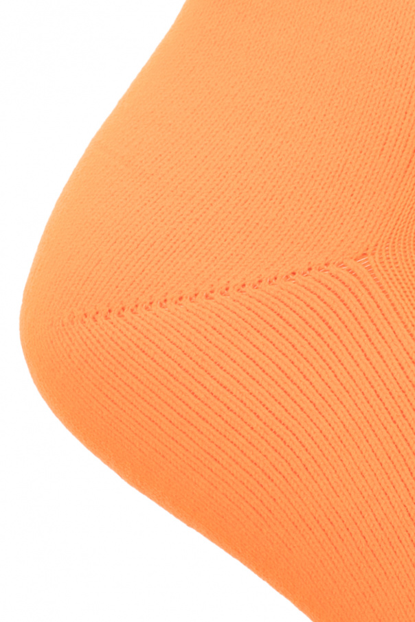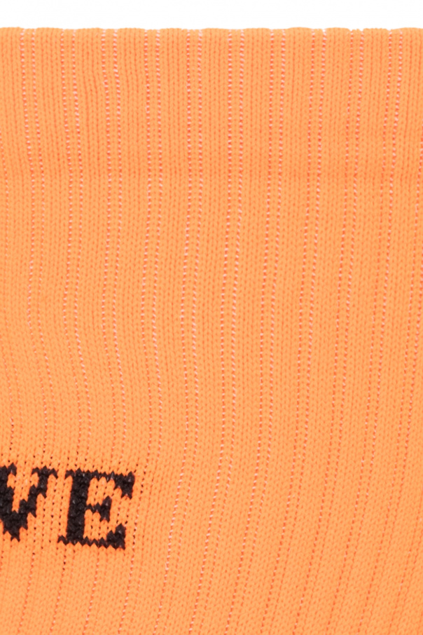 Orange socks with a black logo pattern and ribbed cuffs from Loewe. Made of cotton.