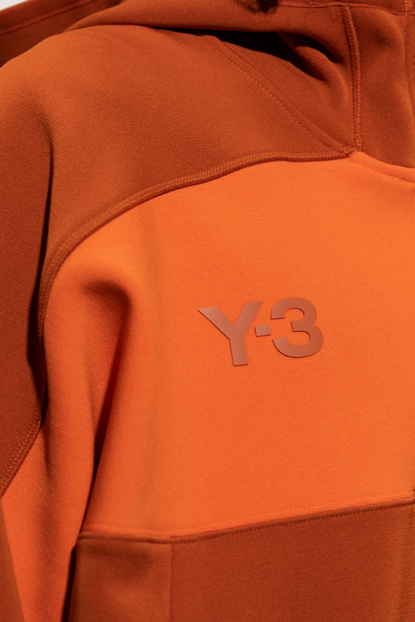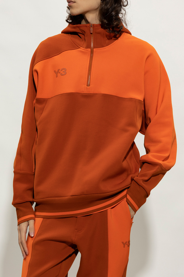 Orange hoodie from Y-3 Yohji Yamamoto. Fastened with a short zip, this design features a logo detail, two pockets with concealed zips and ribbed trims at the hem and cuffs.