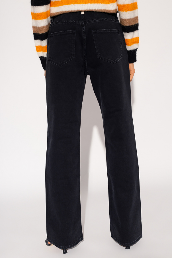 Black ‘Daisy’ jeans from Wandler. Fastened with a button and zip, this pair falls down with flared legs and is complete with three front pockets and two back pockets.
