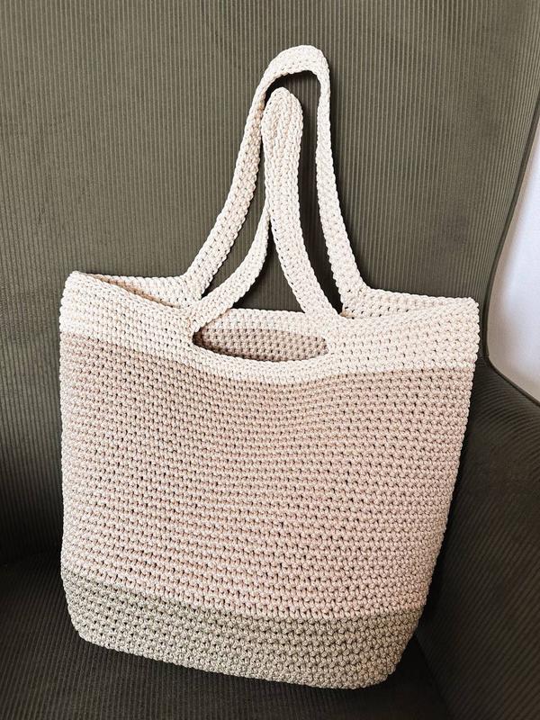 Ручная работа, выполненная из полиэфвренного шнура, практически не промокает, цвет это выгорает. Сумка щельи вязки и держит форму, без подклада.