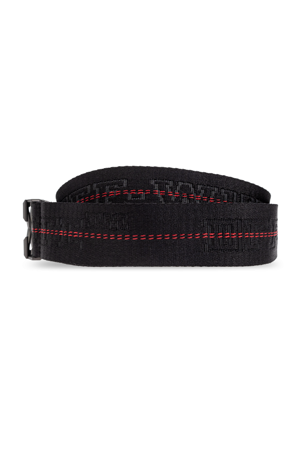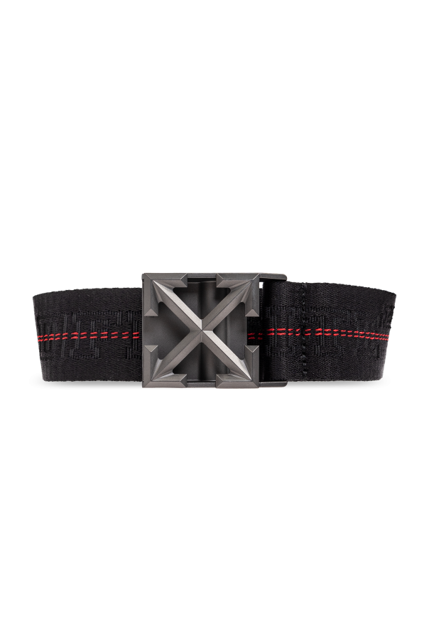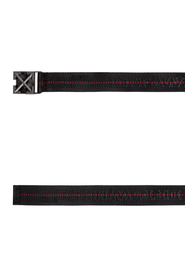 Introducing the Off-White Logo Belt, an exquisite accessory that embodies both elegance and modernity. Crafted with a rectangular silhouette, this belt showcases a robust blend of black fabric and leather, woven with a distinctive texture that exudes a contemporary aura. The belt features a bold metal buckle, adorned with a geometric design of intersecting lines, providing a sophisticated focal point. Red stitching elegantly traverses its length, adding a striking contrast to the predominant black hue. Subtle designer insignias are gracefully embedded into the belt, reflecting the understated luxury synonymous with Off-White. This accessory is ideal for complementing both everyday ensembles and more formal attire, offering a versatile yet chic addition to your wardrobe. Why Choose This Product? Constructed from a durable blend of leather and polyamide. Features a unique geometric buckle design. Accentuated with bold red stitching for a modern twist. Designed by the renowned Off-White, a brand celebrated for its avant-garde fashion.