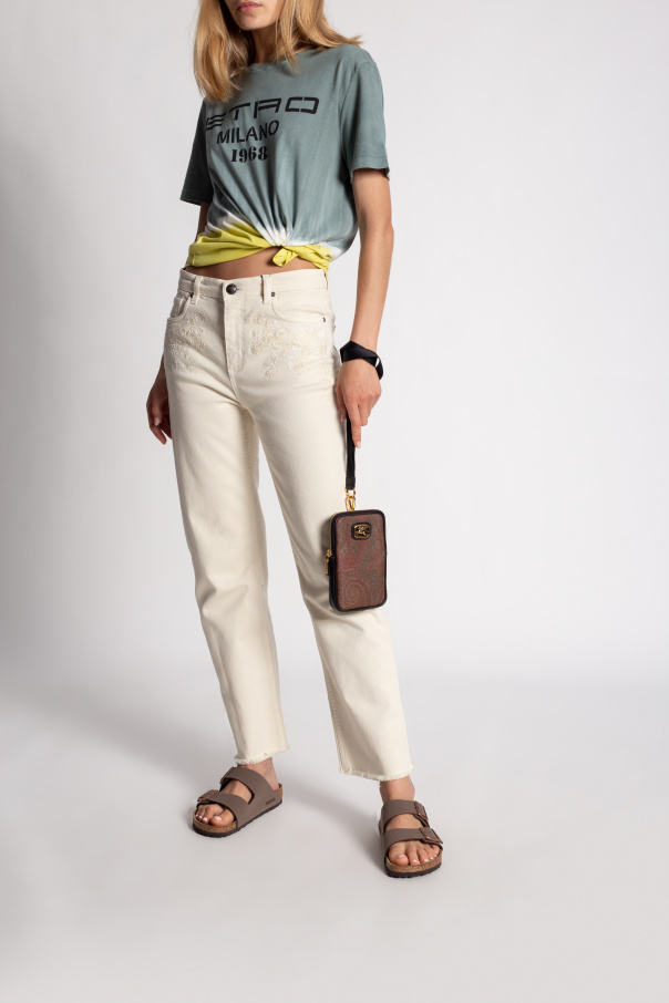 Brown ‘Arizona BS’ slides from Birkenstock. Crafted from Birko-Flor®, this model sits on a brown sole in natural cork and EVA foam and features straps with copper-coloured buckles with an embossed logo.