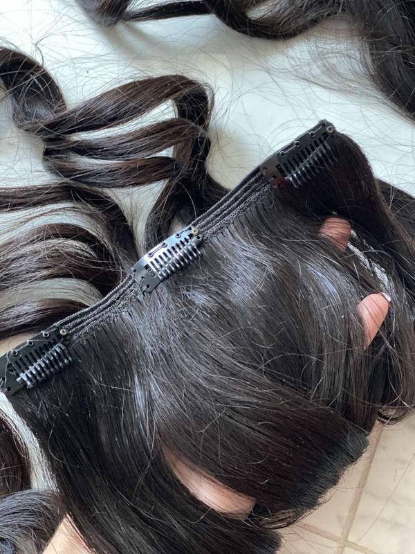 Пряди натуральных волос на заколках, для увеличения объема, каштановый цвет(5), Prof-line, длина 63 см, европейский волос