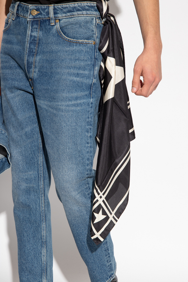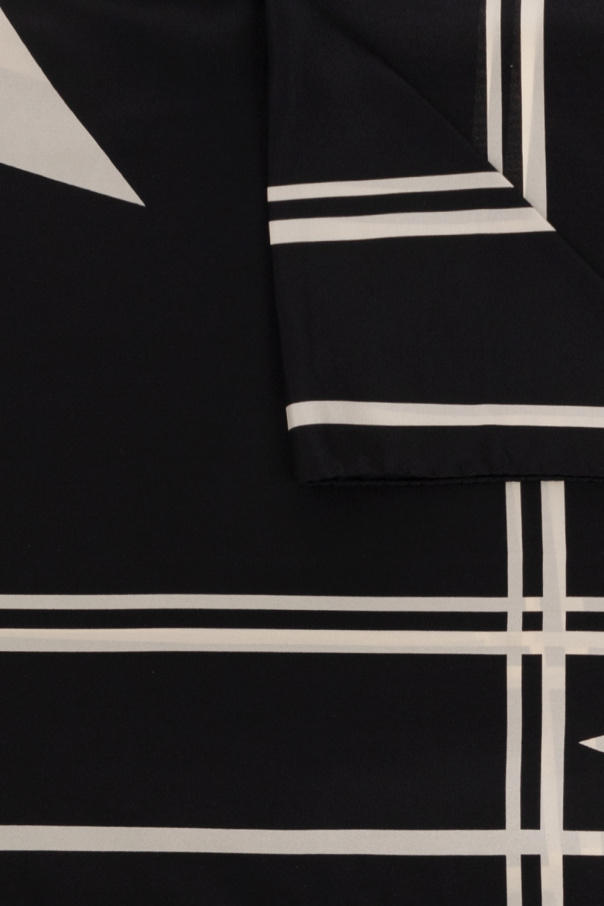 Black scarf with a cream paisley pattern from Golden Goose. Made of silk.