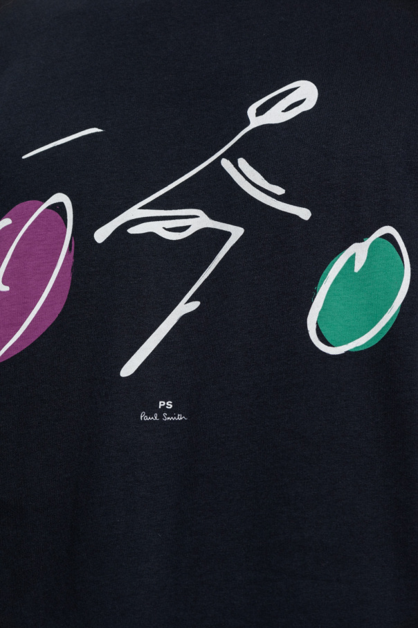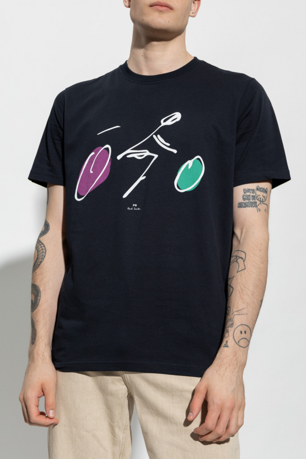 Black crewneck T-shirt from PS Paul Smith. Made of cotton, this style features short sleeves and a colourful graphic print accompanied by the brand\'s logo on the front.