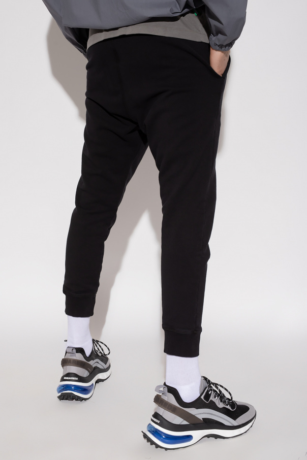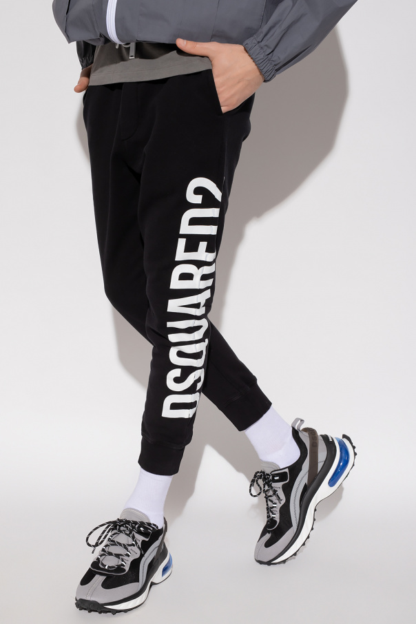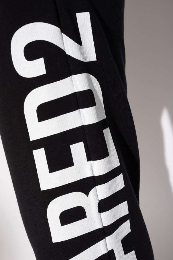 Black sweatpants from Dsquared2. Made of cotton, this pair features a white logo print, two slip pockets and elasticated cuffs.