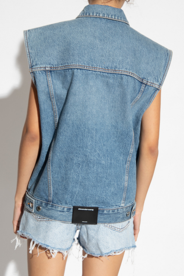 Blue denim vest from Alexander Wang. Crafted from cotton, this style features button fastenings, two slip pockets and two flapped pockets.