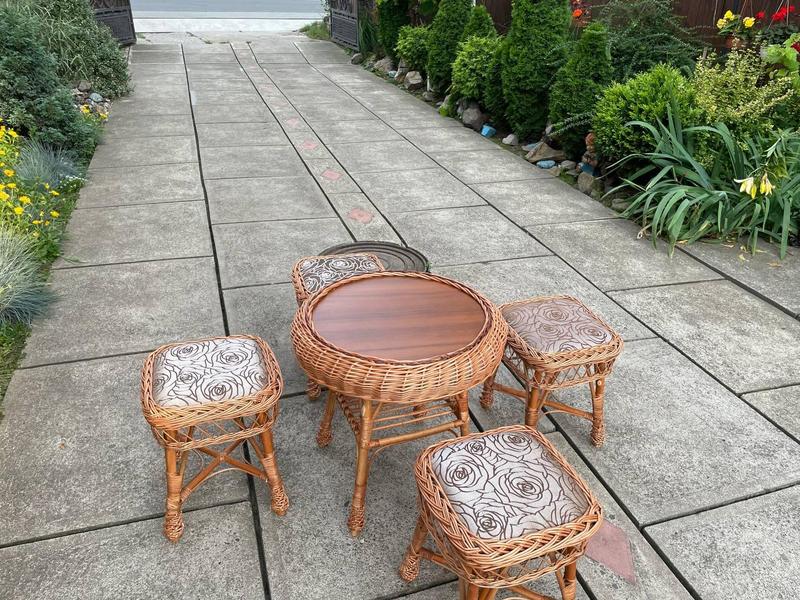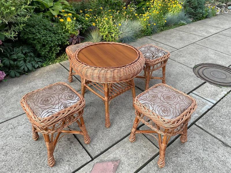Плетеная мебель из лозы. Состав набора: столик + 4 табурета. Возможны