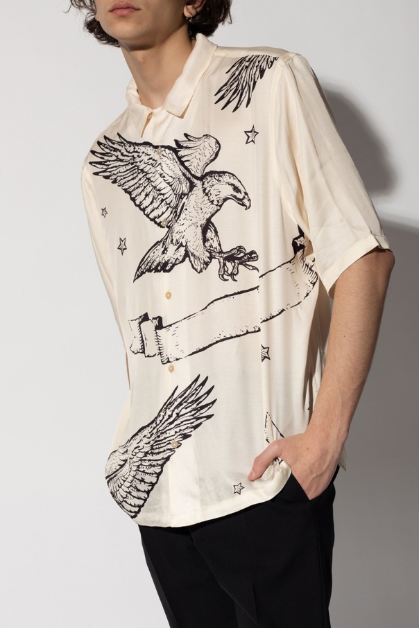 Cream ‘Otis’ shirt from AllSaints. Illustrated with a black animal print, this item features short sleeves and button fastenings.