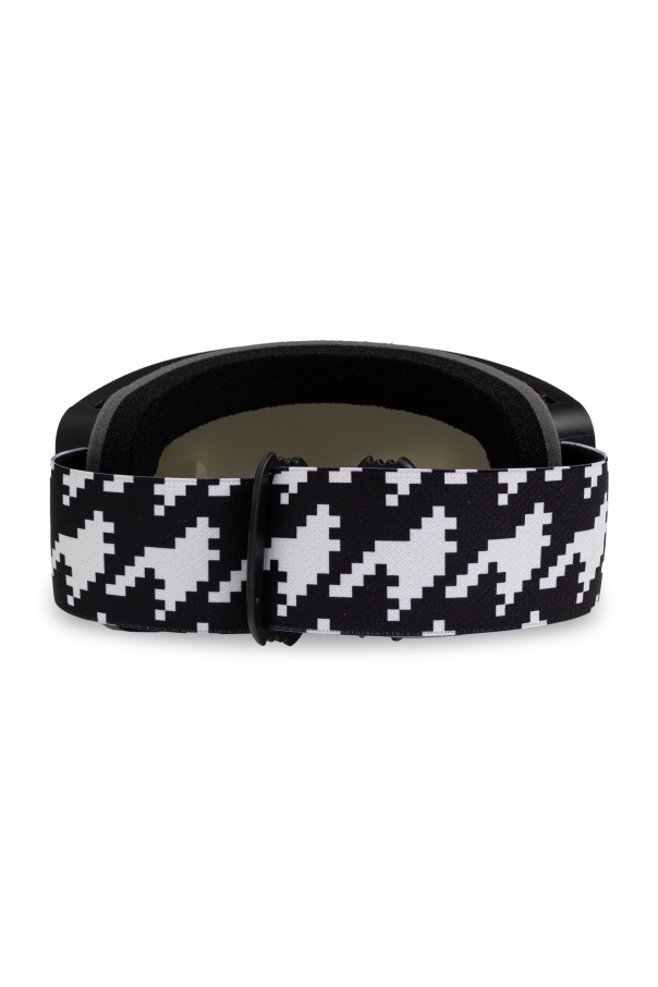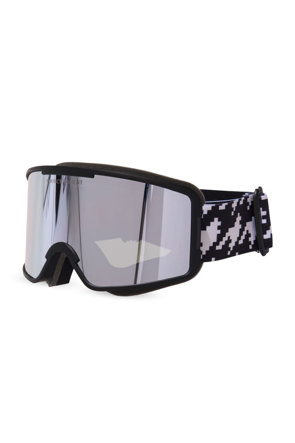 Introducing the Perfect Moment Ski Goggles, a paragon of modern elegance and functionality. Crafted with a contemporary rectangular shape, these goggles offer a wide field of vision, ensuring you never miss a moment on the slopes. The strap is adorned with a chic black-and-white geometric pattern reminiscent of pixels, adding a touch of avant-garde flair. The lenses are gently tinted and feature an anti-reflective coating, typical of ski eyewear, enhancing your visual clarity. Proudly emblazoned on the upper part of the goggles is the \"PERFECT MOMENT\" logo, a testament to its esteemed origin. Accompanied by a sleek black zippered case, these goggles promise protection and effortless storage. The dominant black color is elegantly contrasted with white elements on the strap, creating a striking visual impact. Tailored for women, these goggles are perfect for those who seek style and performance in equal measure. Why Choose This Product? Exclusive design with a modern rectangular shape Enhanced visual clarity with anti-reflective, mirrored lenses Signature Perfect Moment branding Convenient storage with included zippered case Ideal for active women on the ski slopes