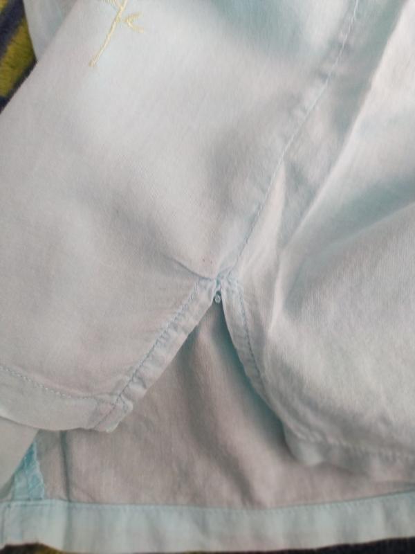лето, нежно бирюзового цвета, мерки: пояс тянется до 60см, ширина в бедрах 64см, длина вниз 83см, внизу на штанине вышивка из нежных каитСостояние: ИдеальноеЦвет:- Бирюзовый