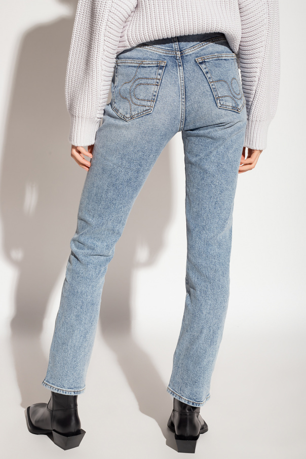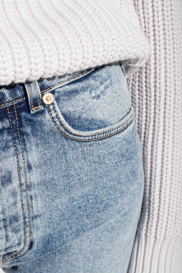 Blue ‘Solstice’ high-waisted jeans from Eytys. Fastened with buttons, this pair falls down with slightly tapered legs and is complete with button fastenings, three front pockets and two back pockets.