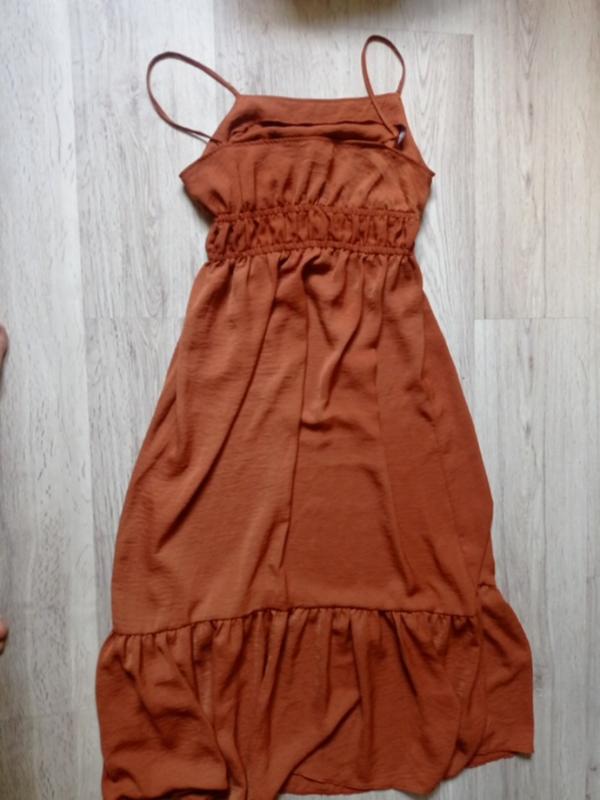нарядна тканина,таракотового кольору під резинку та з великою оборкою внизу стан нового