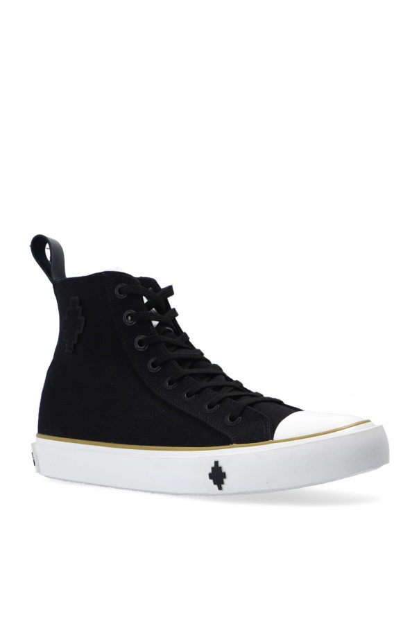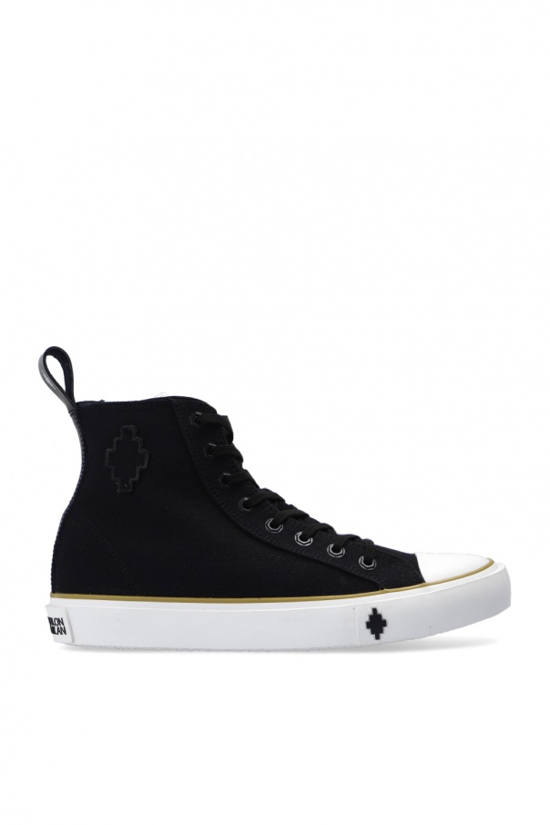Black and white high-top sneakers from Marcelo Burlon. Fastened with a side zip, this lace-up model features a logo patch, pull tab at the back and a rubber sole in white and green.