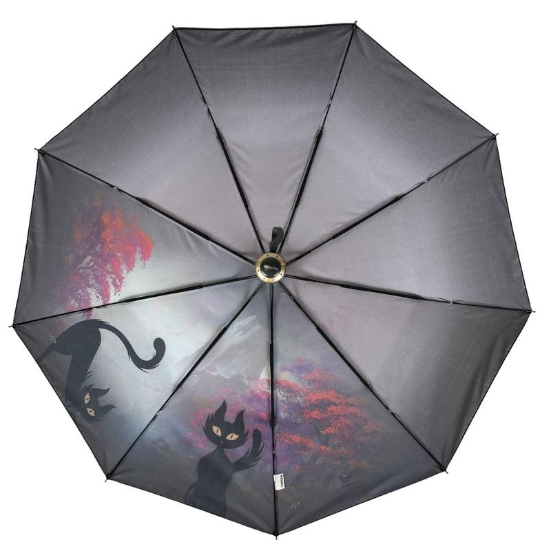 Женский зонт полуавтомат с изображением мистической черной кошки в ночном