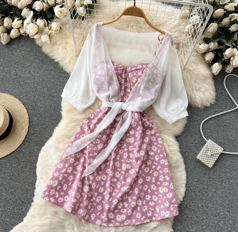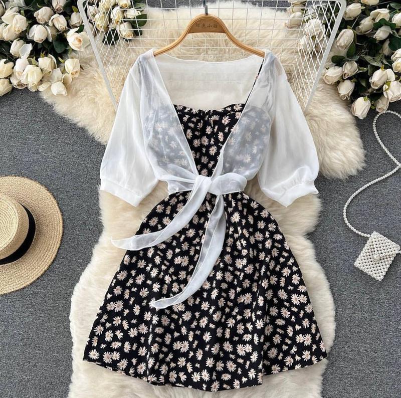 💵Цена 699 грн ❤️Идеальный комплект🔝Летний сарафанчик в комплекте с прозрачной блузой. Бретели регулируются. Сзади сарафан на змейке. Красивый цветочный принт🌸