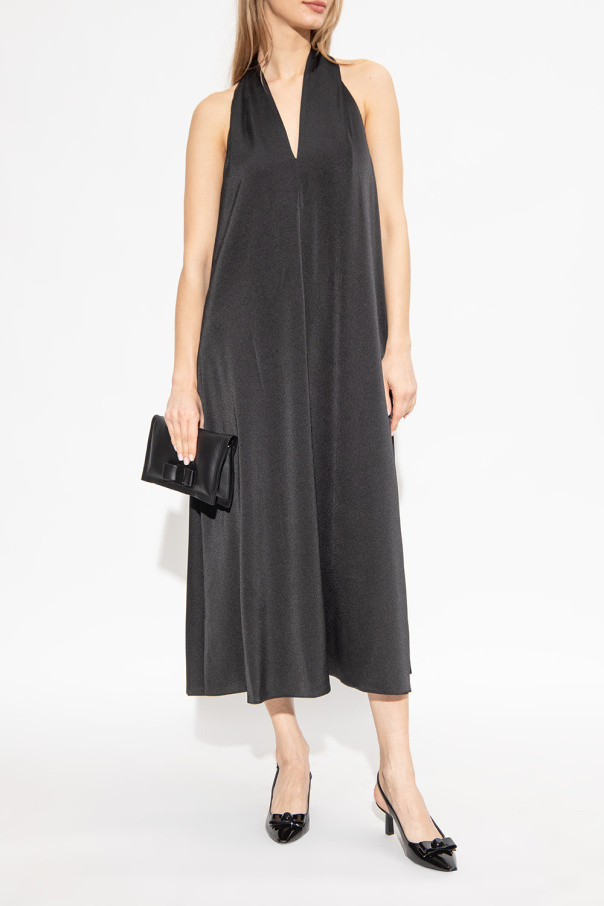 Black ‘Karine’ pumps from FERRAGAMO. Made of patent leather, this model features a bow with a logo-embossed plaque on the front, an adjustable buckle strap at the back, a tapered toe and a black leather sole at the base.