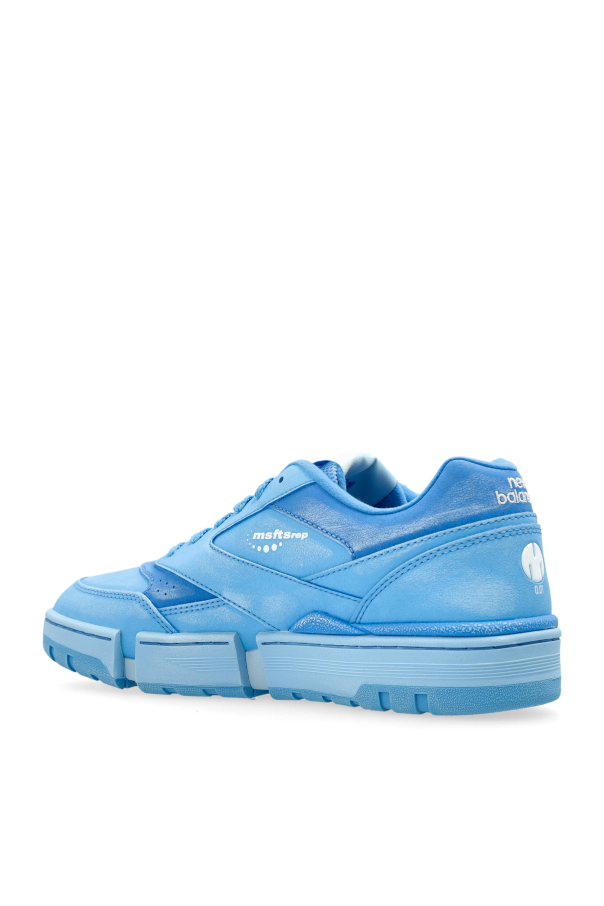 Introducing the New Balance X MSFTSrep, a harmonious fusion of athletic prowess and avant-garde aesthetics. These exquisite low-top sneakers, adorned in a dominant light blue, exude a modern, energetic vibe, making them a quintessential addition to any wardrobe. Crafted from premium leather and synthetic materials, these sneakers are not only a feast for the eyes but also a testament to durability and comfort. The signature New Balance logo is prominently displayed on the side and tongue, a mark of authenticity and heritage. Emphasizing a bold, chunky silhouette, the sneakers feature a distinctive block-patterned sole, providing both style and substantial grip. The rear showcases subtle inscriptions of \"New Balance\" and \"MSFTSrep,\" adding an exclusive touch. Why Choose This Product? Striking modern design with a light blue hue. High-quality leather and synthetic craftsmanship. Robust sole for enhanced traction and style. Iconic New Balance branding for an authentic appeal.