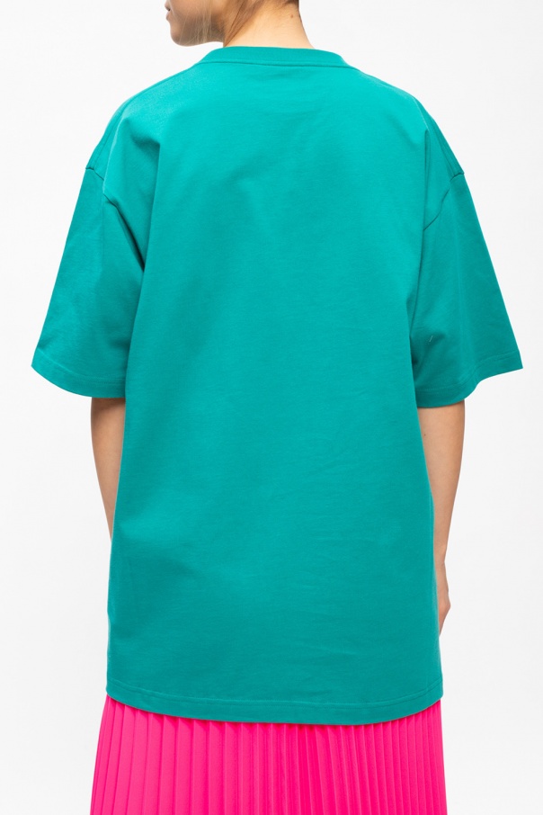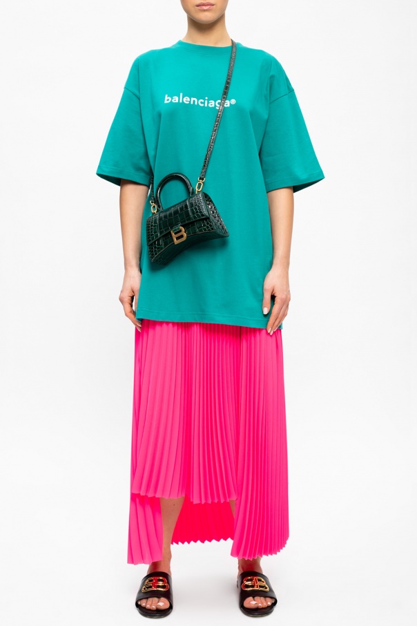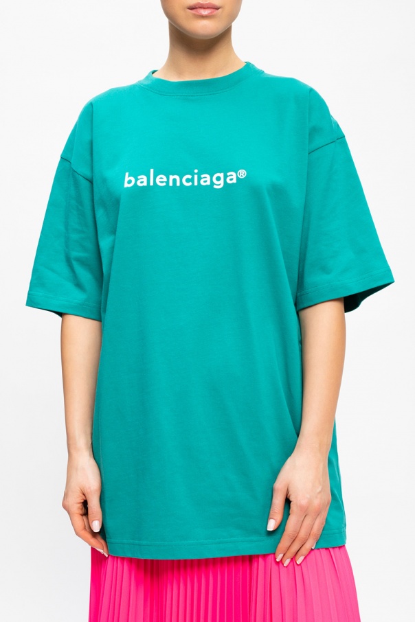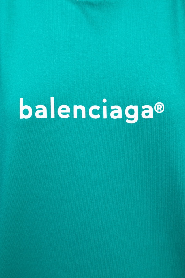 Green crewneck T-shirt from Balenciaga. Crafted from cotton with a relaxed fit, this style boasts a white graphic print with the brand\'s logo.