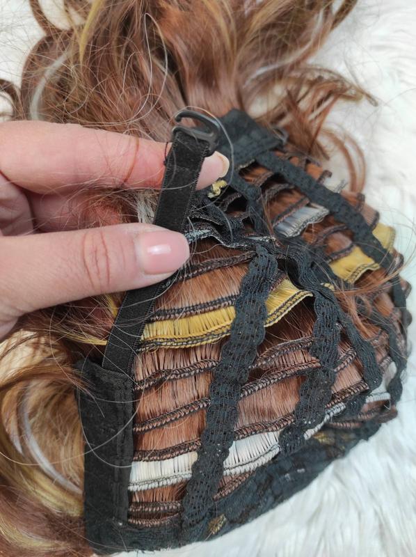 Волос пришит на "шапочку - сетку", объем головы регулируется.