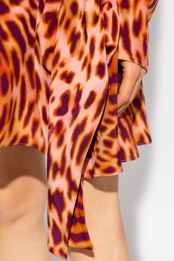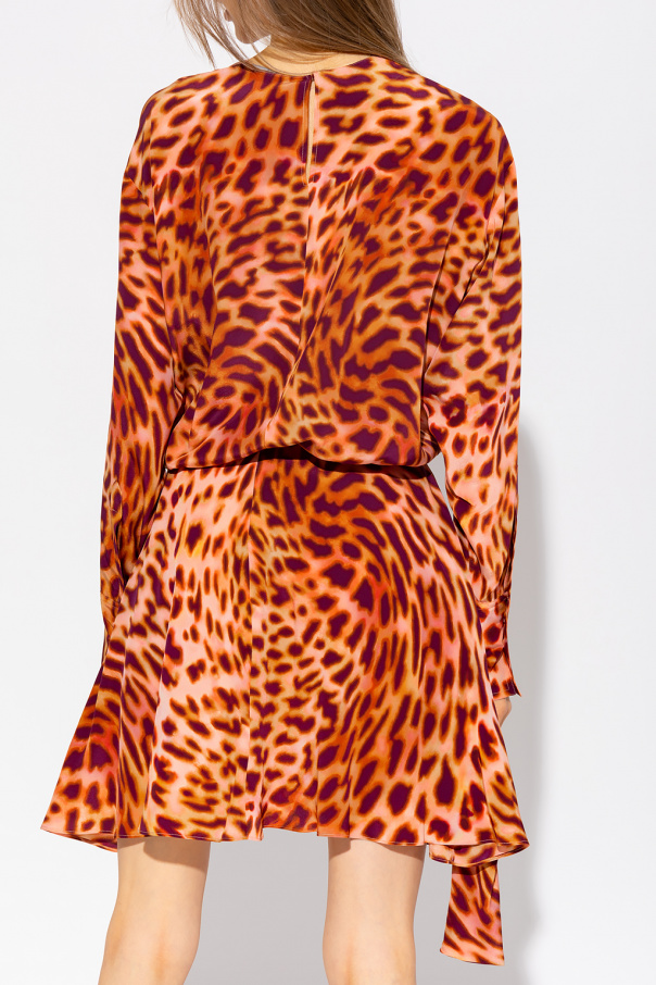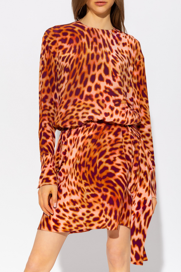 Multicolored dress from Stella McCartney. Made of silk, this design features a zip and button closure, animal motif, elasticated waistband, asymmetric hem and long sleeves with banded cuffs.