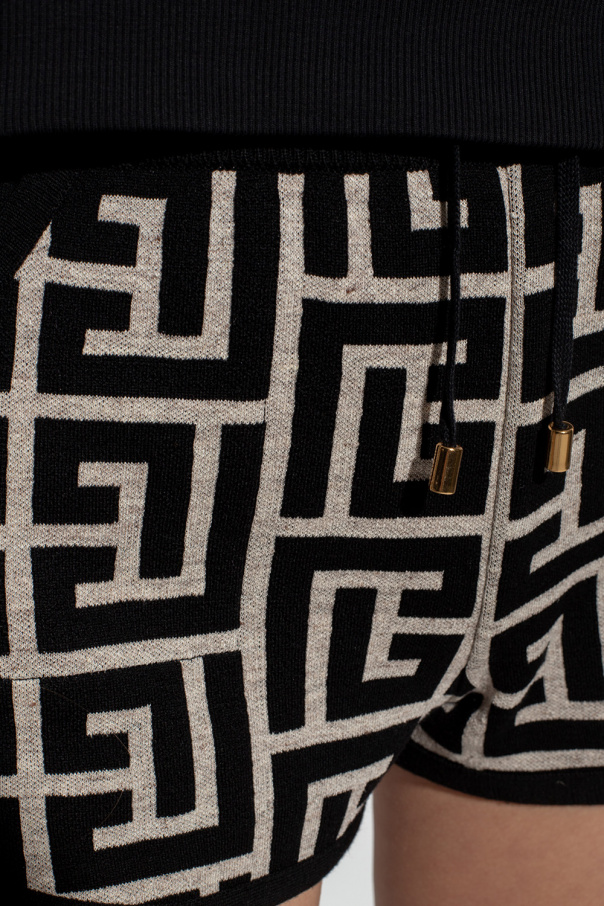 Cream and black shorts from Balmain. Fastened with drawstrings with metal elements in gold-tone, this pair features an elastic waistband, logo monogram and two slip pockets.