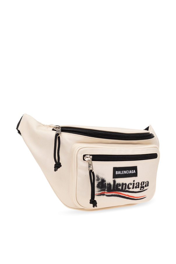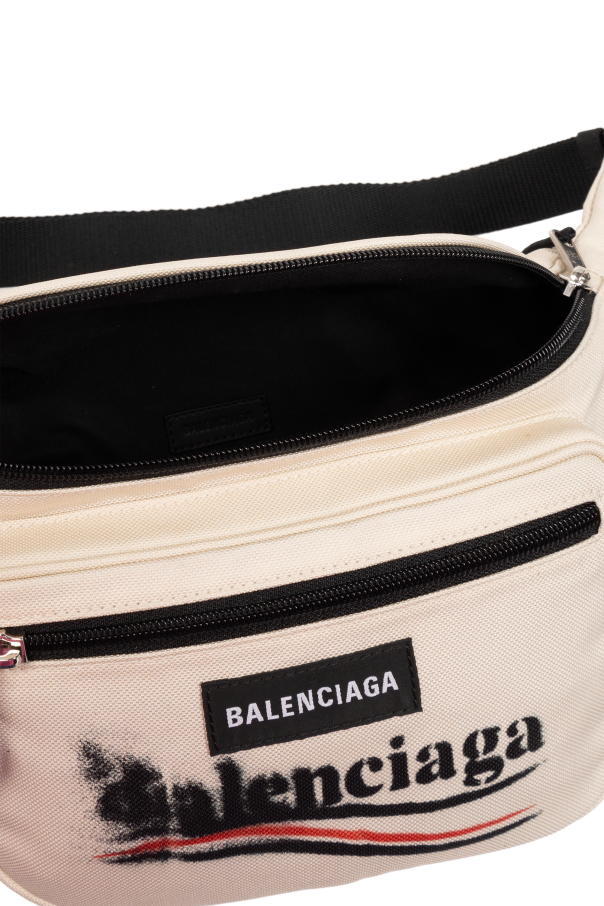 Introducing an exquisite addition to any fashion connoisseur\'s collection, the Balenciaga Waist Bag. This piece stands as a testament to the union of functionality and avant-garde style, meticulously crafted from a durable synthetic fabric that promises longevity and ease of maintenance. Its elongated silhouette, with a gracefully curved upper edge, epitomizes ergonomic design while maintaining an elegant aesthetic. The bag\'s pristine white hue is accentuated by stark black details, including zippers and straps, creating a striking contrast that captures the eye. Its surface is adorned with the iconic Balenciaga logo, surrounded by paint-splash graphics that lend a contemporary, edgy vibe. The bag features a main compartment and a smaller front pocket, both secured with zippers, ensuring your essentials are organized and accessible. The adjustable strap offers versatile wearability, allowing the bag to be styled in various manners to suit individual preferences. Why Purchase This Product? Made from high-quality, durable synthetic material for lasting use. Chic, modern design with distinctive paint-splash logo detailing. Practical organization with a main compartment and additional front pocket. Adjustable strap for customizable styling and comfort. An exclusive piece from the renowned designer house of Balenciaga.