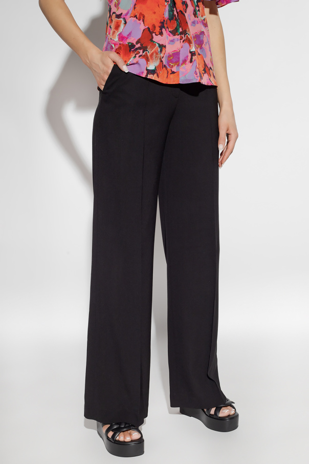 Black trousers from PS Paul Smith. Crafted from wool, this pair features a hook, zip and button fastenings, two side pockets and wide, pleated, loose-fitting legs.