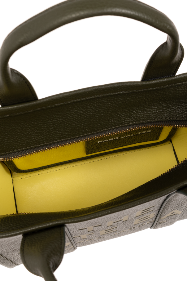 Dark green ‘The Tote Small’ shopper bag from Marc Jacobs. Made from grained leather, this design fastens via a zip and showcases an embossed logo on the front, a patch on the back, two half-round handles, gold-tone metal hardware as well as a detachable and adjustable shoulder strap and one internal compartment with a slip pocket.