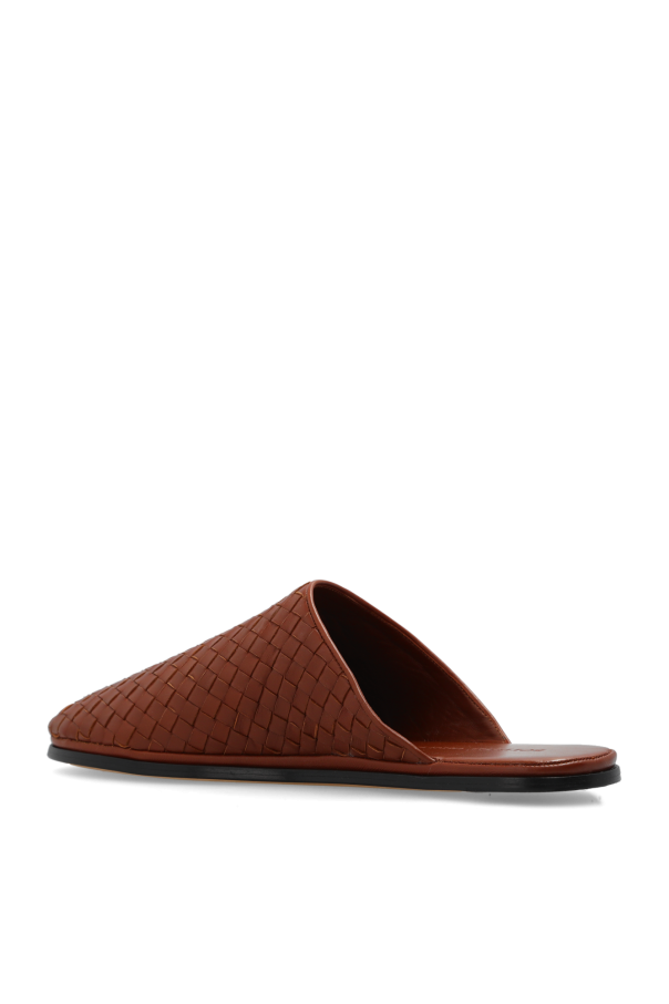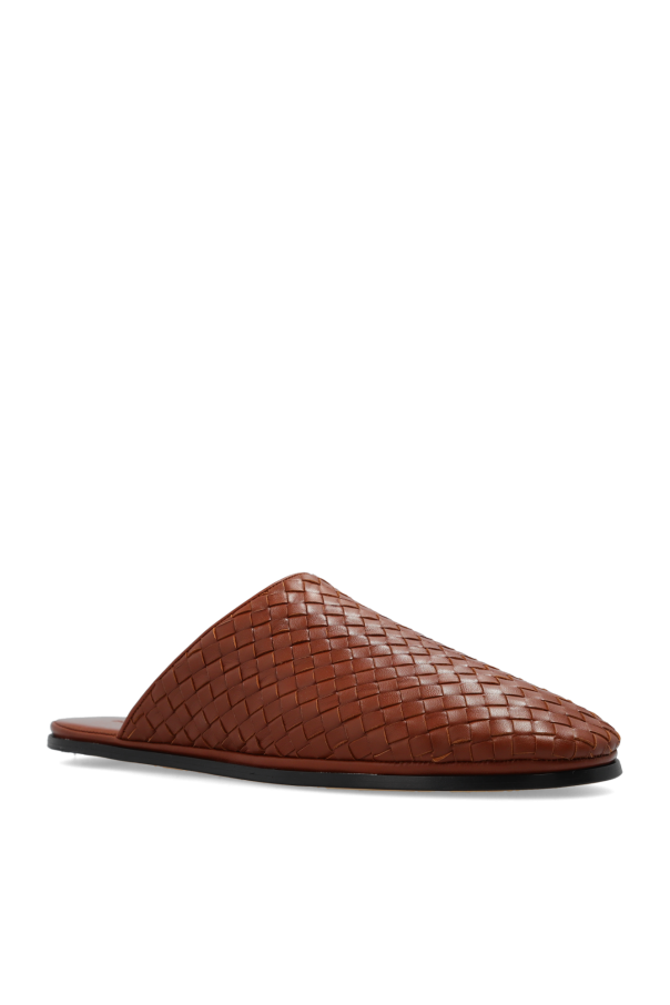 Brown slides from Bottega Veneta. Crafted from leather with the iconic Intrecciato weave, this pair is set on a beige leather sole.