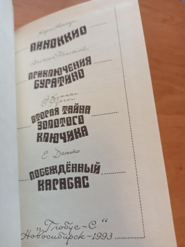 Назва другої повісті на столику й шмуцтитулі пропишена «Пригоди Буратіно», а в вміст, у вихідні та випускних даних прописані «Золотий ключик або пригоди Буратіно».Состояние: ХорошееЦвет:- Разноцветный