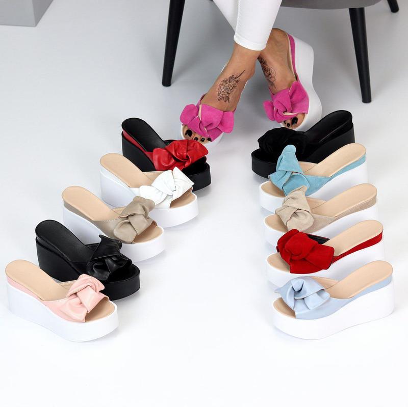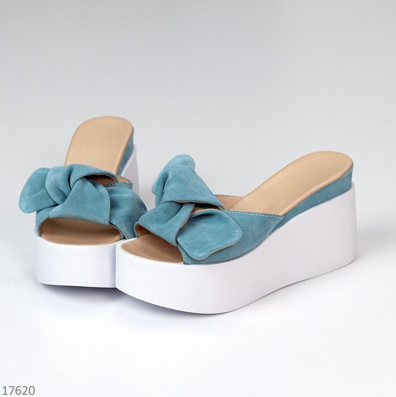 Женские шлепанцы босоножки из натуральной кожи / натуральной замши в разных цветах на платформе
