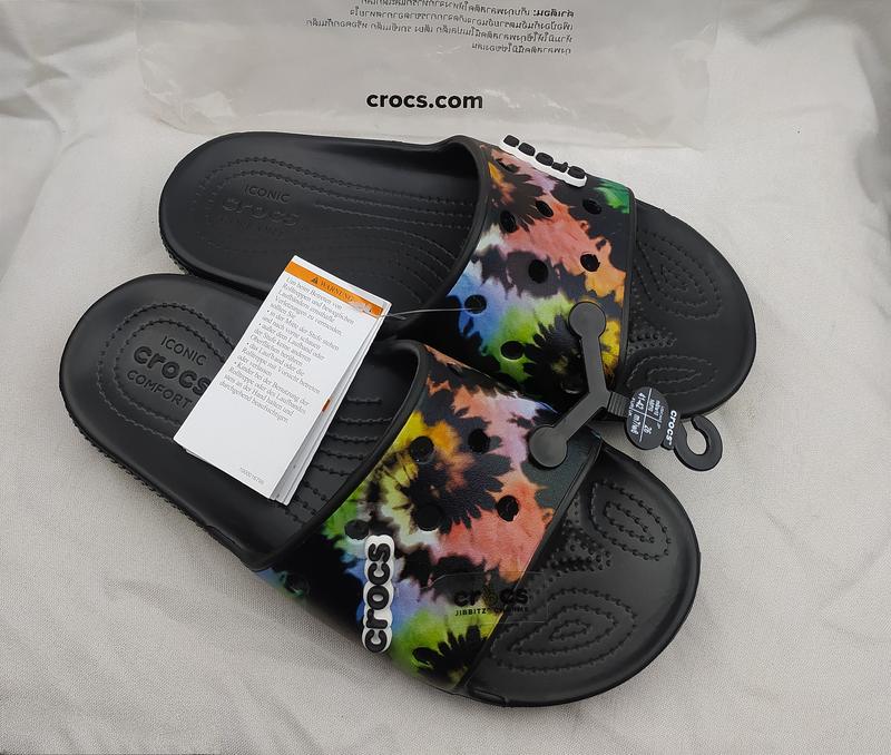 К Вашему вниманию новые ОРИГИНАЛЬНЫЕ тапочки Crocs. Классная тай дай расцветка,есть съёмный джиббитс в виде логотипа крокс. Самые свежие коллекции. Подойдут как парню так и девушке
