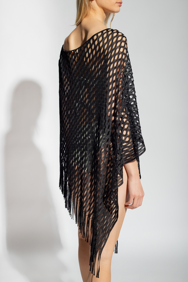 Black ‘Oro’ openwork poncho with fringes from Pain de Sucre.