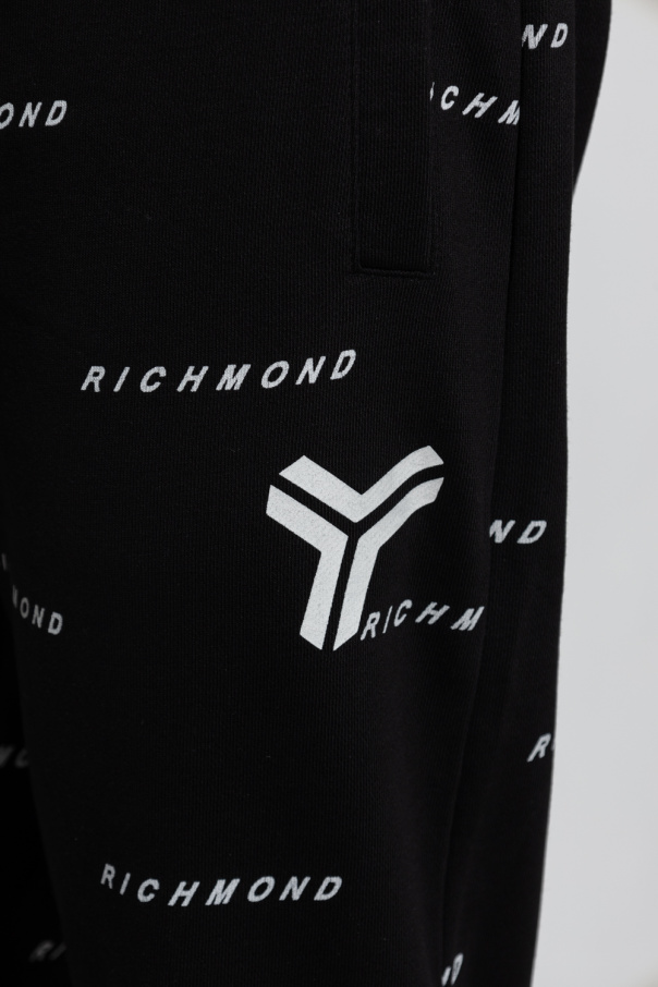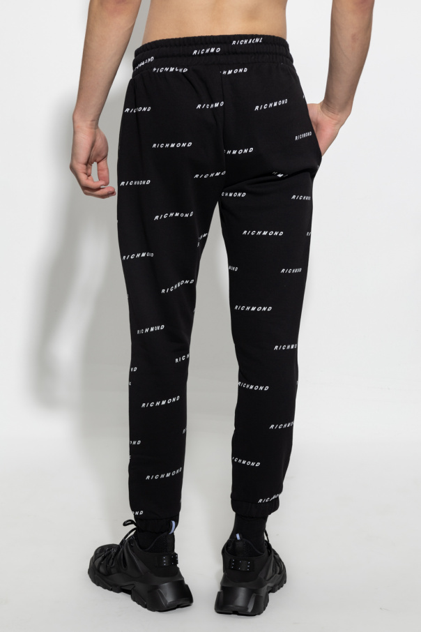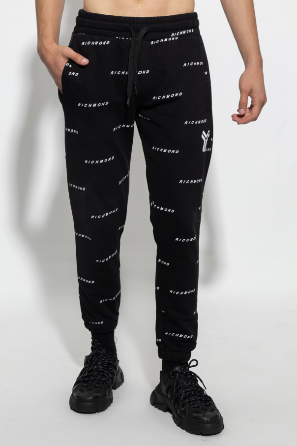 Black sweatpants from John Richmond. Made from cotton, this pair features a white graphic print with the brand\'s logo, two slip pockets and elasticated cuffs.